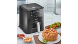 | Material | Airfryer: Plástico e componentes metálicos Panela: Alumínio com revestimento antiaderente. Cabo: Baquelite. |